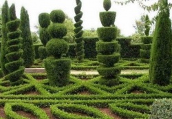 При любом формировании (стрижке) хвойных или других декоративных растений должны быть соблюдены правила: удалять не более 20-30% кроны, после этого подкормить растение, поливать в засуху. Для того чтобы начать стричь хвойное растение, не нужно ожидать, когда оно станет слишком высоким. Растение, над которым уже работали, следует стричь трижды за сезон. Для этого нужно запастись секатором, садовыми ножницами (можно использовать и большие портняжные). Вначале выясните, сколько у растения стволов. Их можно не очень плотно связать или же удалить ближе к верхушке будущей фигуры. Хорошо бы предварительно сделать наброски, прорисовав нужный контур растения. Можно стрижку намеченной модели (формирование хвойного дерева) проводить в два этапа.
